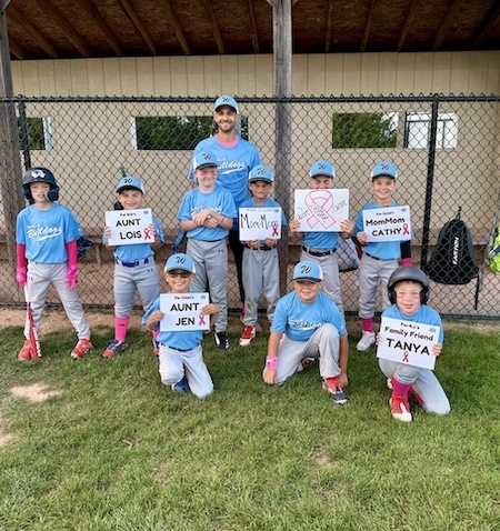 8U travel team hit the field in PINK to honor the fighters, celebrate the survivors, and remember those we’ve lost.